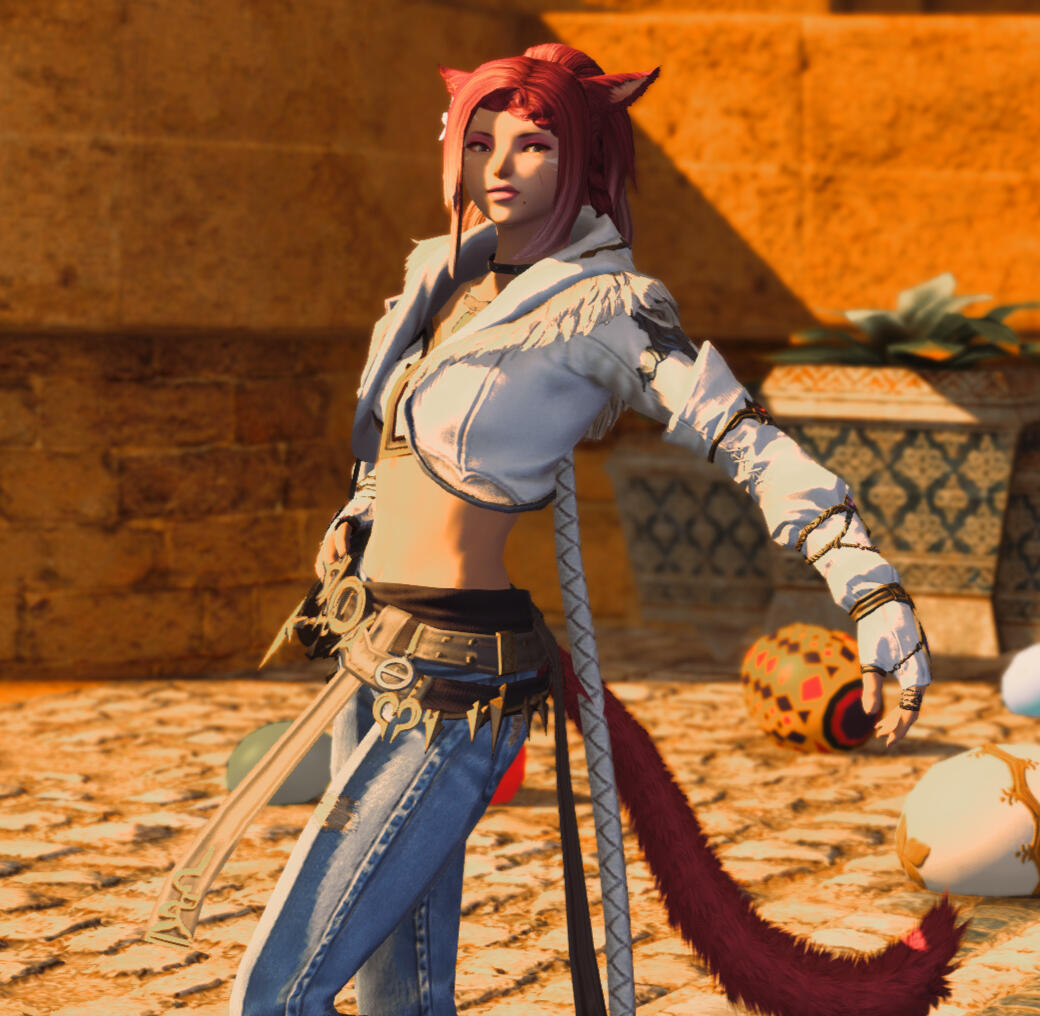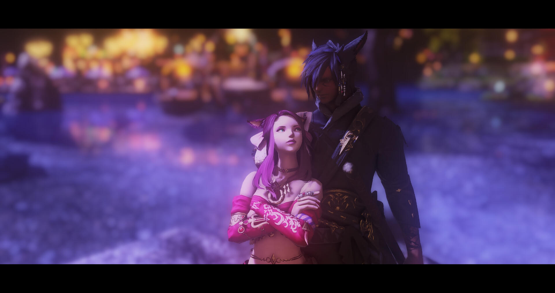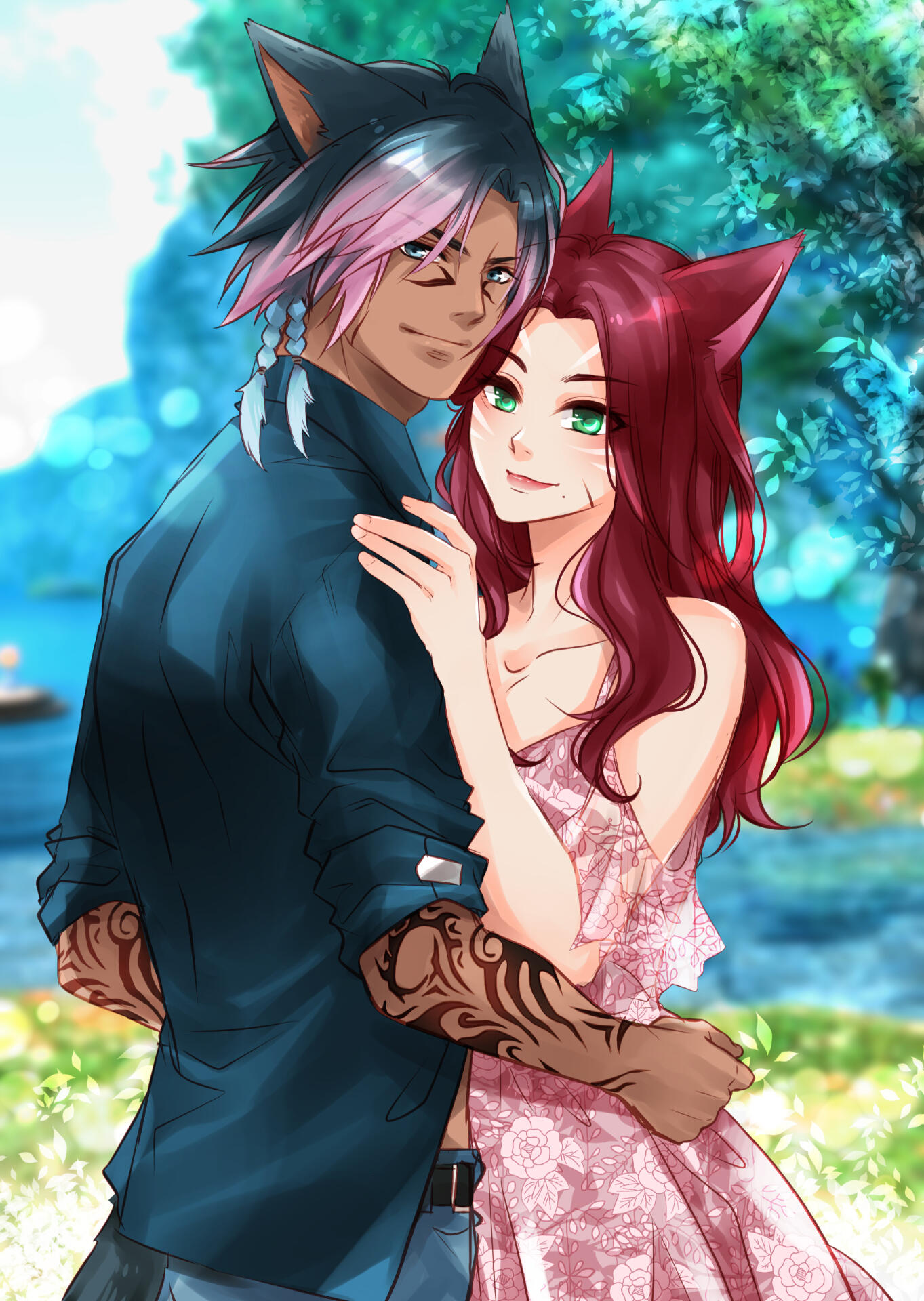 Little did she know when she arrived in Eorzea she would find her life turning around for the better. The two met at a beach party in Costa Del Sol and went for a walk along the ocean with the moon high in the sky. Since that evening, the two had never been apart, later mating for life. He is everything to her.