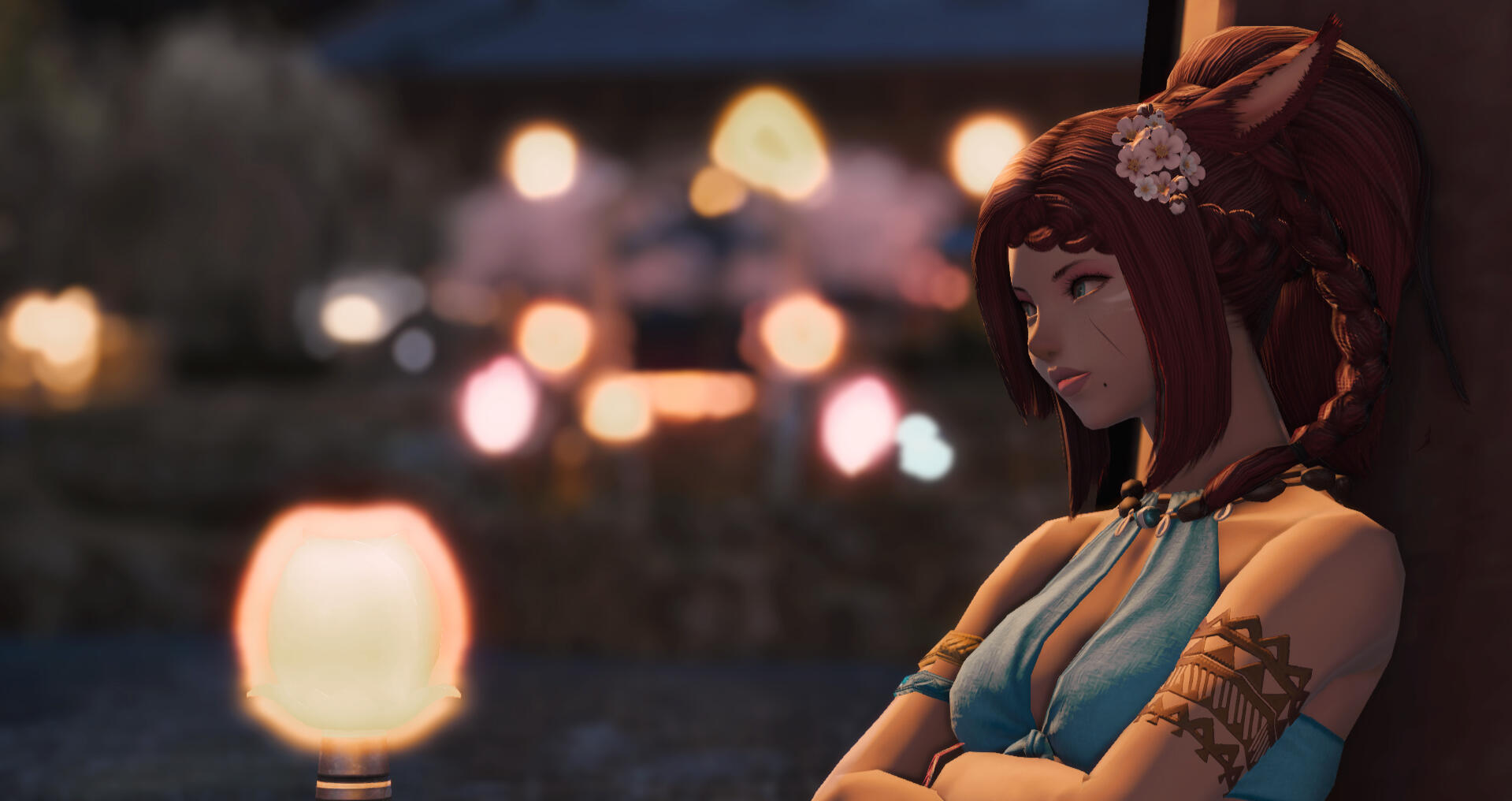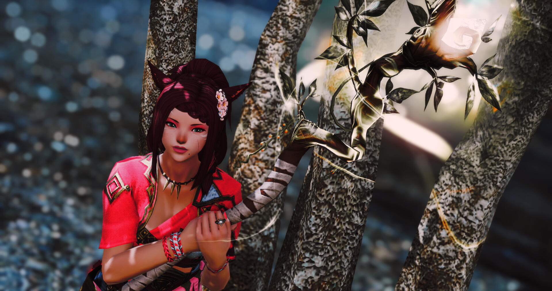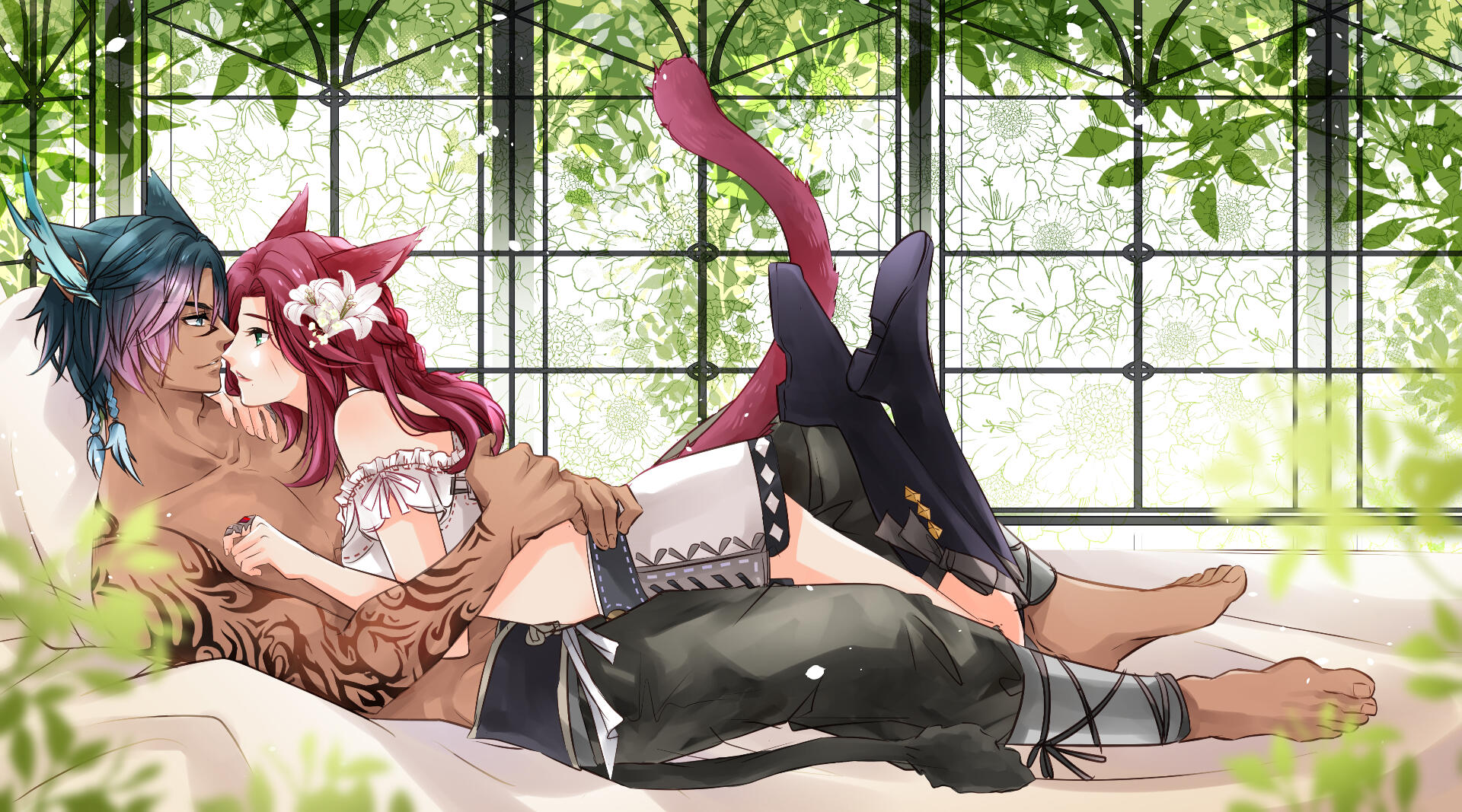 Little did she know when she arrived in Eorzea she would find her life turning around for the better. The two met at a beach party in Costa Del Sol and went for a walk along the ocean with the moon high in the sky. Since that evening, the two had never been apart, later mating for life. He is everything to her.
