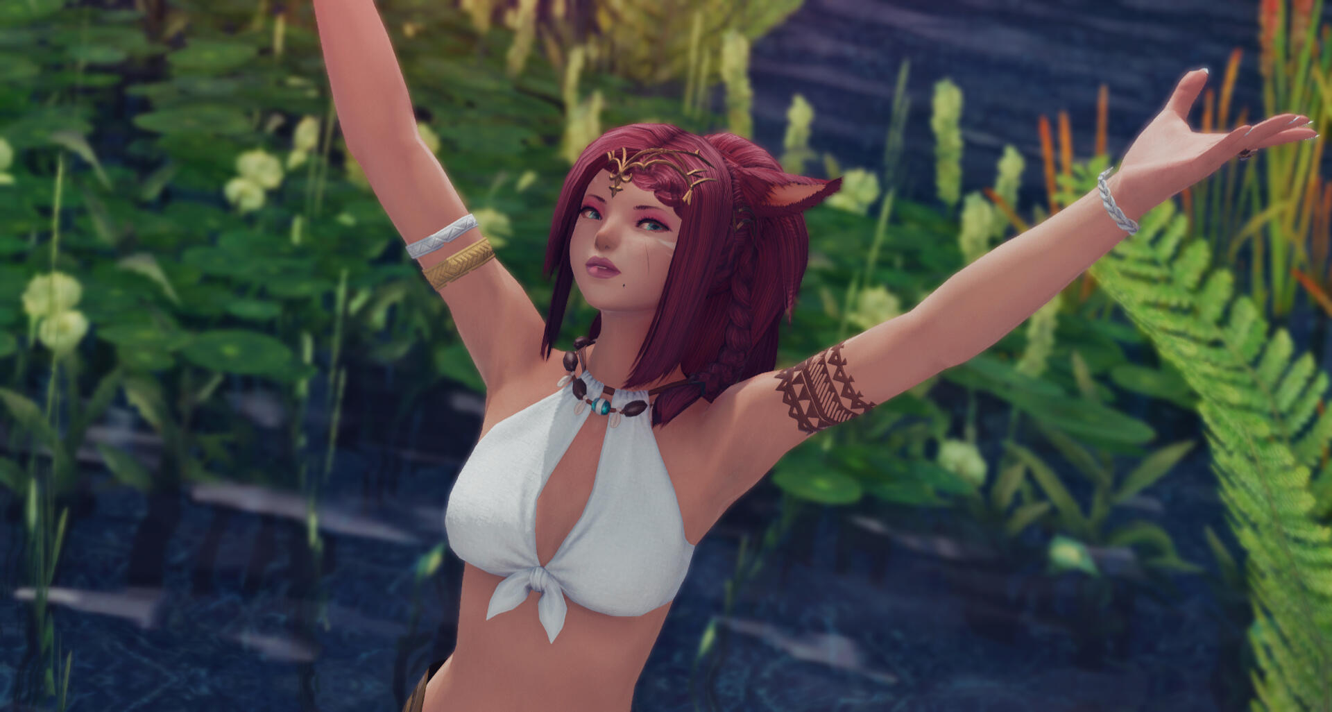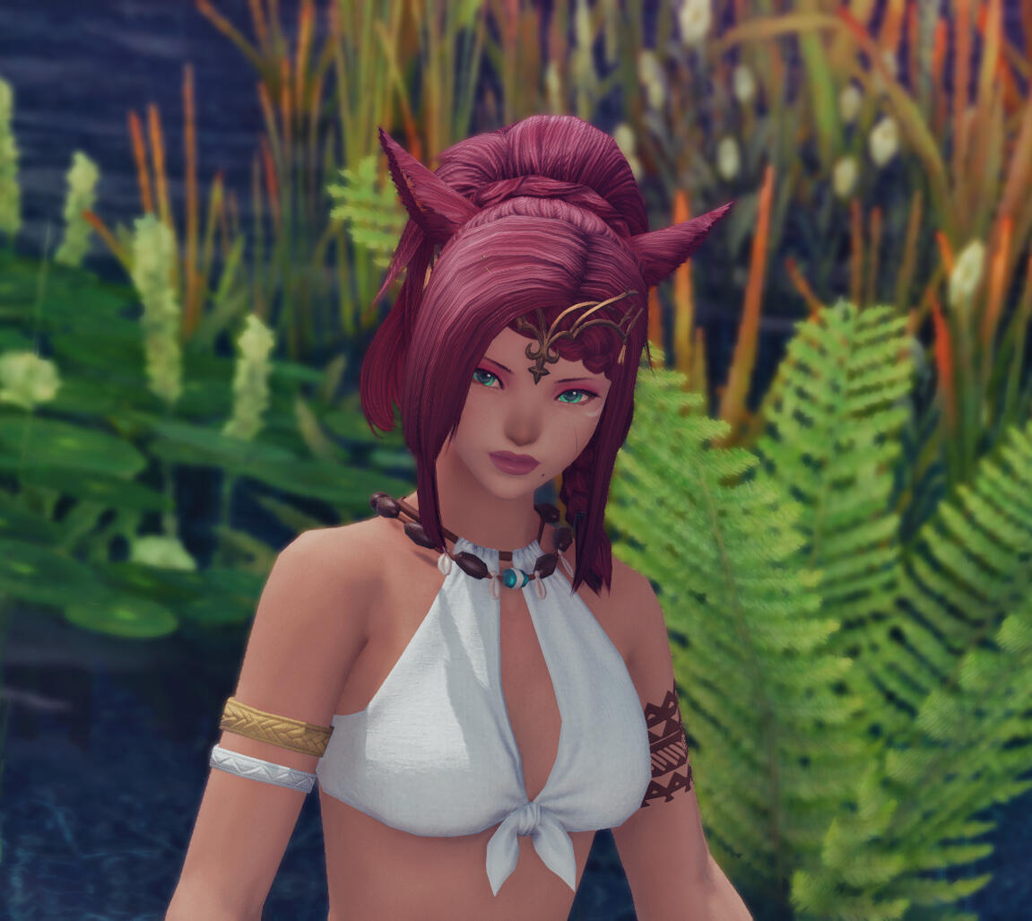 THE NEAR EAST - Zorah grew up in Thavnair, spending much of her time in Radz-at-Han. Those who lived there or visited as merchants may have seen her about. There also may have been a time her services were paid for for a night. This also means Garleans may have known her as well.THE BLACK SHROUD - A few years ago did she travel to Eorzea and it was not long after that she met the man she'd spend her life with and move to Gridania. Her love for floral and nature grew the moment she stepped into the shroud where she now spends much of her time. Along with the Shroud and Gridania, she can be found in the Botanists guild on and off.
